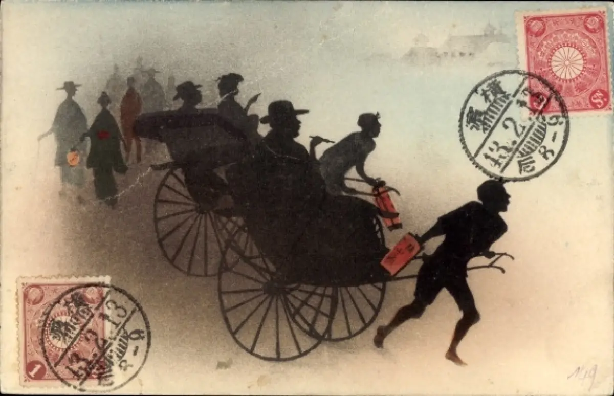 Scherenschnitt Ak Rikscha-Fahrer, Passanten