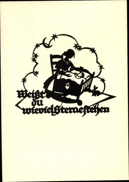 Scherenschnitt Ak Schwindt, A. M., Weißt du wieviel Sterne stehen, Mutter, Wiege