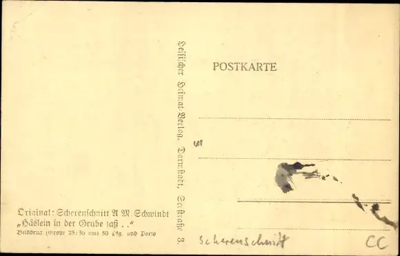 Scherenschnitt Ak Schwindt, A.M., Häslein in der Grube saß...