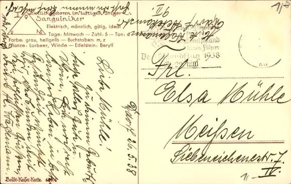 Zustand, siehe Scan, gelaufen, 1938 - ca 9 cm X 14 cm