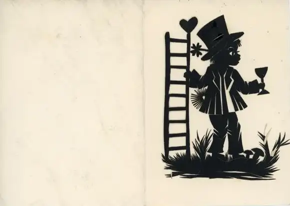 Scherenschnitt Klapp Ak Schornsteinfeger, Leiter, Weinglas