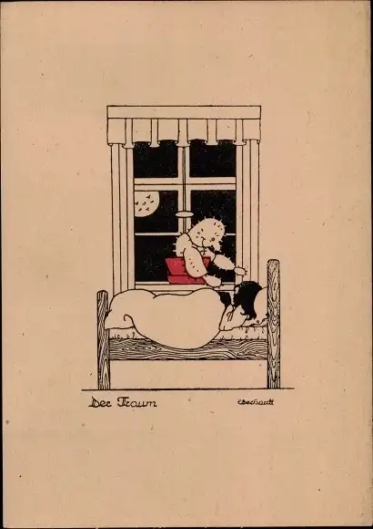 Scherenschnitt Künstler Ak Eberhardt, Der Traum, Kaktus wird lebendig