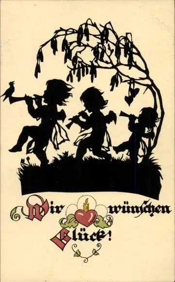 Scherenschnitt Künstler Ak Plischke, G., Glückwunsch, Musizierende Engel