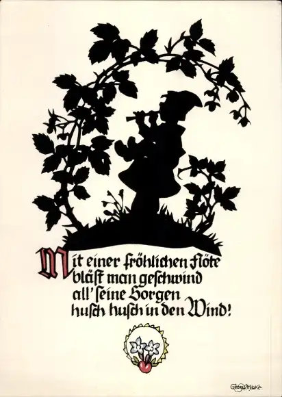 Scherenschnitt Künstler Ak Plischke, G., Musizierender Junge, Mit einer fröhlichen Flöte...