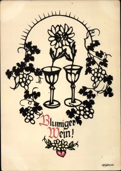 Scherenschnitt Künstler Ak Plischke, Georg, Blumiger Wein