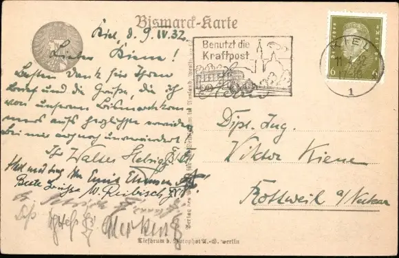 Zustand, siehe Scan, gelaufen, 1932 - ca 9 cm X 14 cm