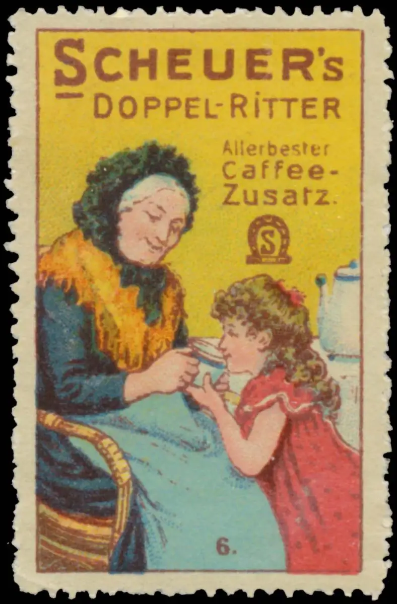 allerbester Kaffee-Zusatz, Oma mit Enkelkind, Bild 6, Größe/Zustand: 5x3 , guter Zustand, Original alte Reklamemarke die seinerzeit für die Werbung benutzt wurde