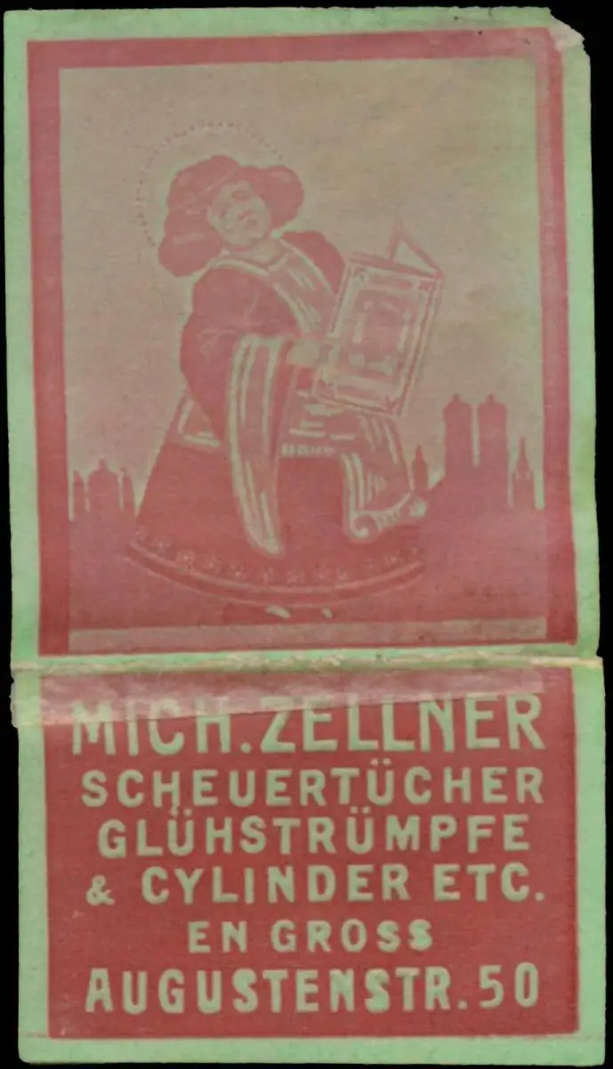 Zylinder etc. en gross, Augustenstraße 50, Münchner Kindl, Größe/Zustand: 6x3 , beschädigt, Original alte Reklamemarke die seinerzeit für die Werbung benutzt wurde
