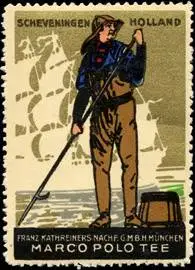 Marco Polo Tee, Schiff, Rückseite mit Werbung, Größe/Zustand: 5x4 , guter Zustand, Original alte Reklamemarke die seinerzeit für die Werbung benutzt wurde