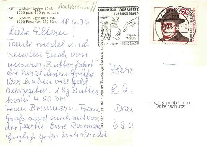 alte Postkarte Schiffe Ships Navires MF Gedser postalisch gelaufen Erhaltung siehe scans [IrynaD87]