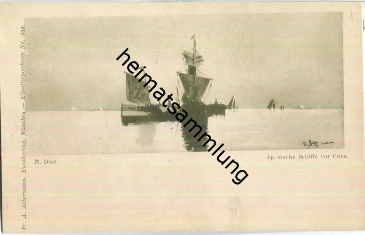 Schiffe vor Cuba - signiert - Verlag Fr. A. Ackermann München ca. 1900 (G7244) *