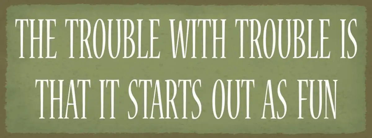 Schild the trouble with trouble is that it starts out as fun 27x10 blech od.holz