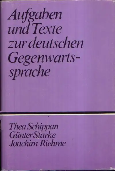 Aufgaben; Texte; deutsche Gegenwartssprache; Thea Schippan; Joachim Riehme; Günter Starke; Sprachwissenschaft; deutsche Sprache; Lexikologie; Grammatik; Orthographie