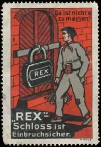 Rex Schloss ist Einbruchsicher, Größe/Zustand: 6x4 , beschädigt, Original alte Reklamemarke die seinerzeit für die Werbung benutzt wurde