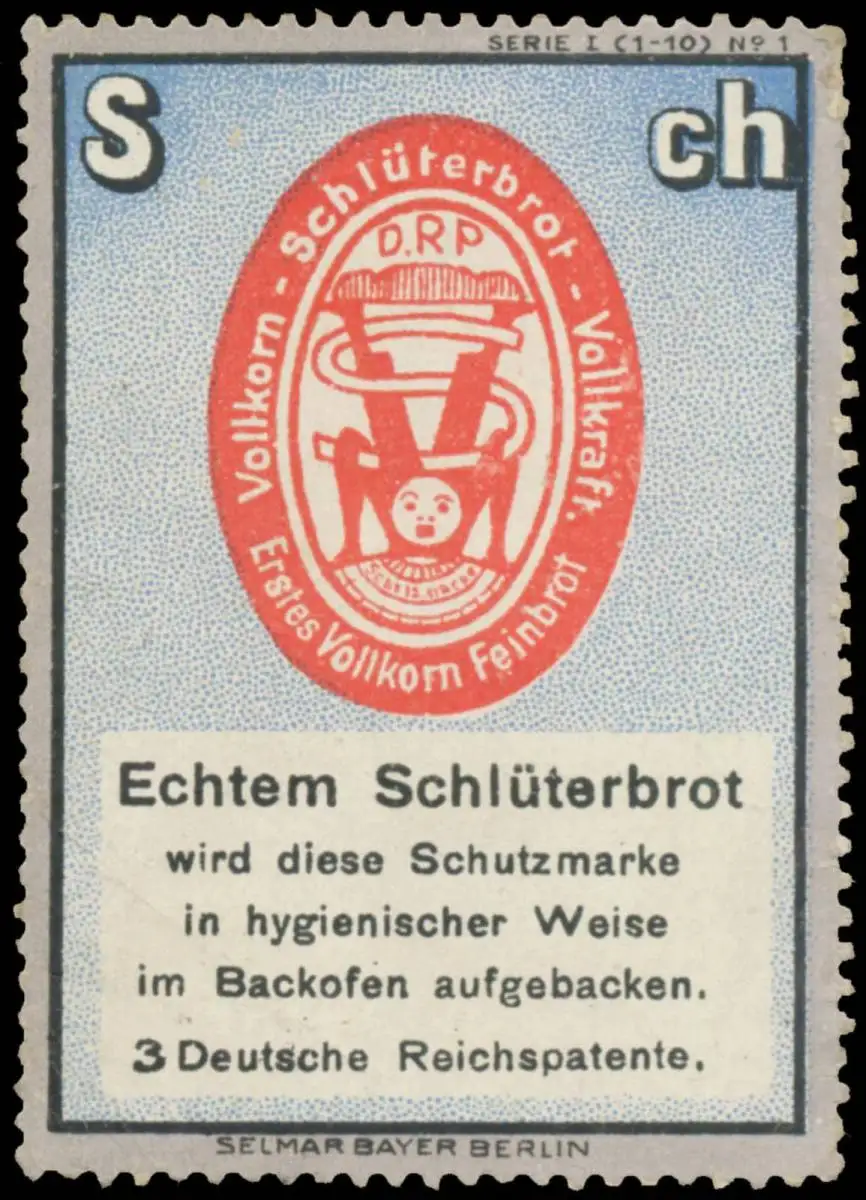 Echtem Schlüterbrot wird diese Schutzmarke in hygienischer Weise im Backofen aufgebacken. Buchstabenserie I (1-10) No. 1, Größe/Zustand: 6x4 , guter Zustand, Original alte Reklamemarke die seinerzeit für die Werbung benutzt wurde