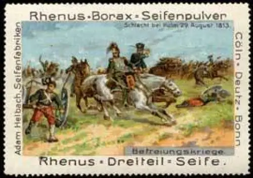 Serie Befreiungskriege, Rhenus-Borax Seifenpulver, Größe/Zustand: 5x8 , guter Zustand, Original alte Reklamemarke die seinerzeit für die Werbung benutzt wurde