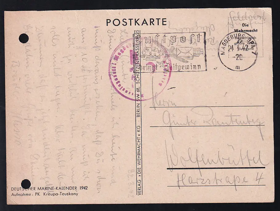 Schlachtschiff in der hohen Dünung des Atlantik, Aktenlochung