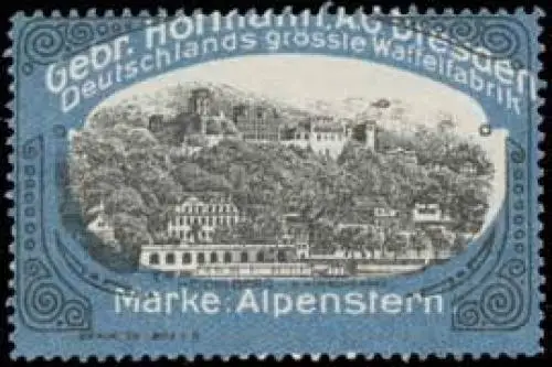 Waffeln Marke Alpenstern, Deutschlands grösste Waffelfabrik, Größe/Zustand: 3x5 , guter Zustand, Original alte Reklamemarke die seinerzeit für die Werbung benutzt wurde