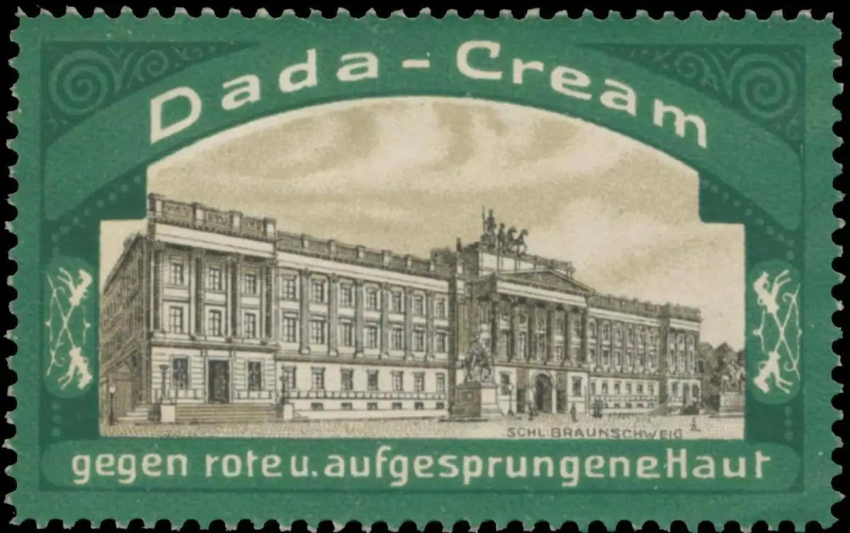 Dada-Cream gegen rote und aufgesprungene Haut, grün, Größe/Zustand: 3x5 , guter Zustand, Original alte Reklamemarke die seinerzeit für die Werbung benutzt wurde