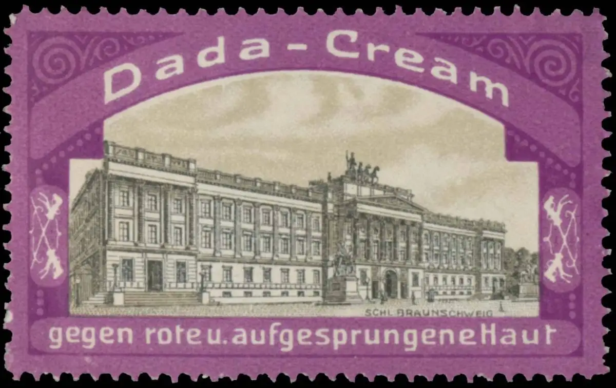 Dada-Cream, gegen rote und aufgesprungene Haut. Violett, Größe/Zustand: 3x5 , guter Zustand, Original alte Reklamemarke die seinerzeit für die Werbung benutzt wurde