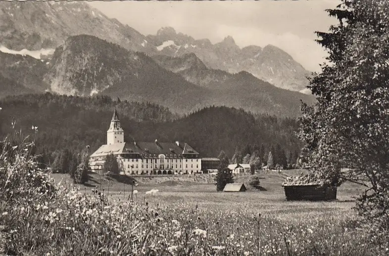 Schloß Elmau mit Dreitorspitze gl1961 E9837
