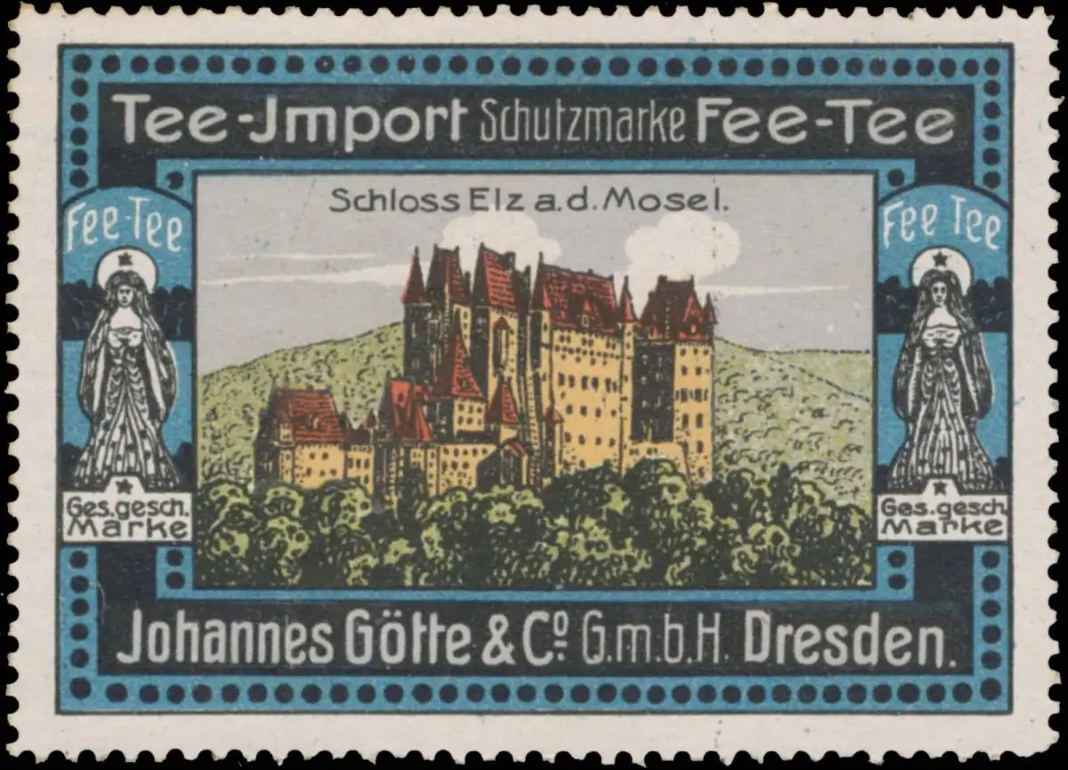 Tee-Import, Schutzmarke Fee-Tee, Größe/Zustand: 4x6 , guter Zustand, Original alte Reklamemarke die seinerzeit für die Werbung benutzt wurde