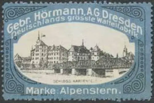 Deutschlands grösste Waffelfabrik, Waffeln Marke Alpenstern, Größe/Zustand: 3x5 , guter Zustand, Original alte Reklamemarke die seinerzeit für die Werbung benutzt wurde