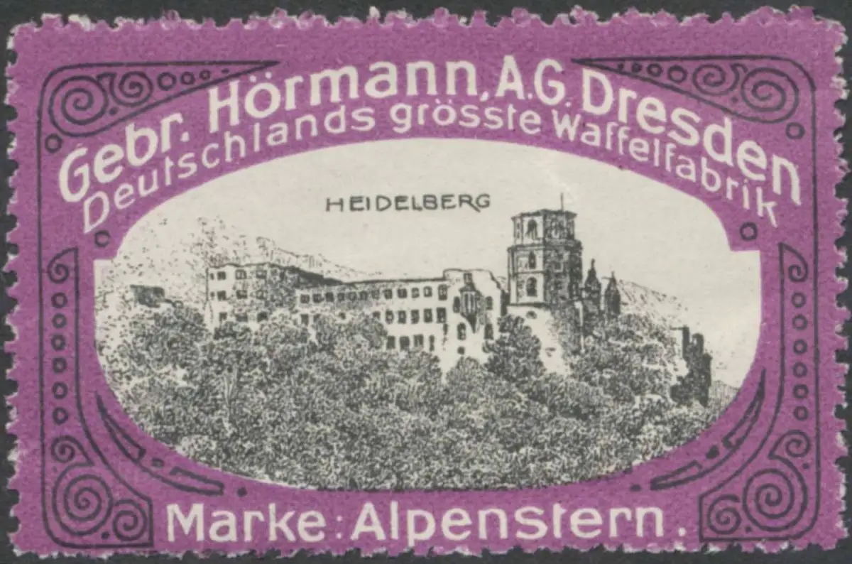 Waffeln Marke Alpenstern, Größe/Zustand: 4x5 , guter Zustand, Original alte Reklamemarke die seinerzeit für die Werbung benutzt wurde
