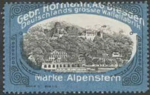 Deutschlands grösste Waffelfabrik, Waffeln Marke Alpenstern, Größe/Zustand: 3x5 , Fehldruck, guter Zustand, Original alte Reklamemarke die seinerzeit für die Werbung benutzt wurde