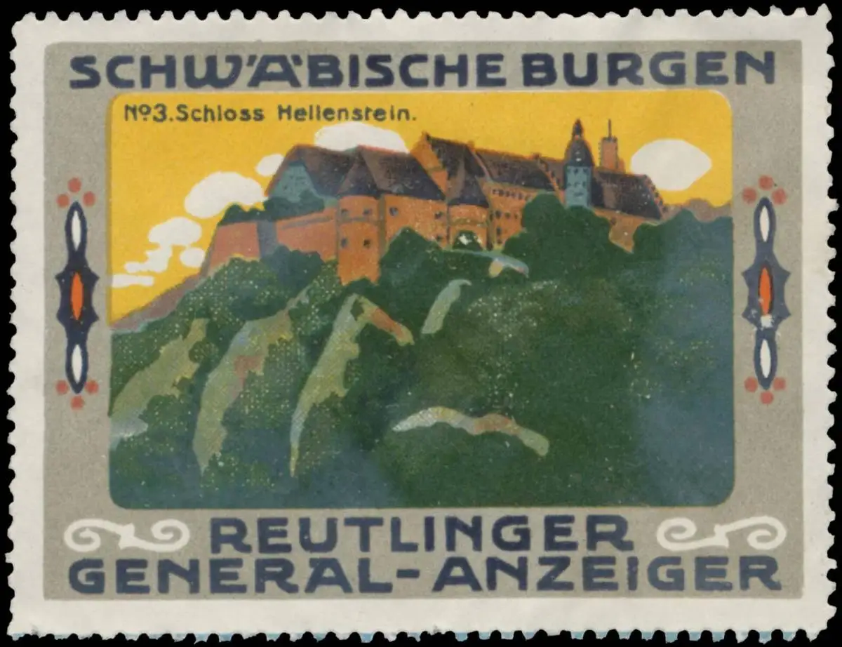 Serie: Schwäbische Burgen, Nr. 3, Größe/Zustand: 5x6 , leicht geknickt, Original alte Reklamemarke die seinerzeit für die Werbung benutzt wurde