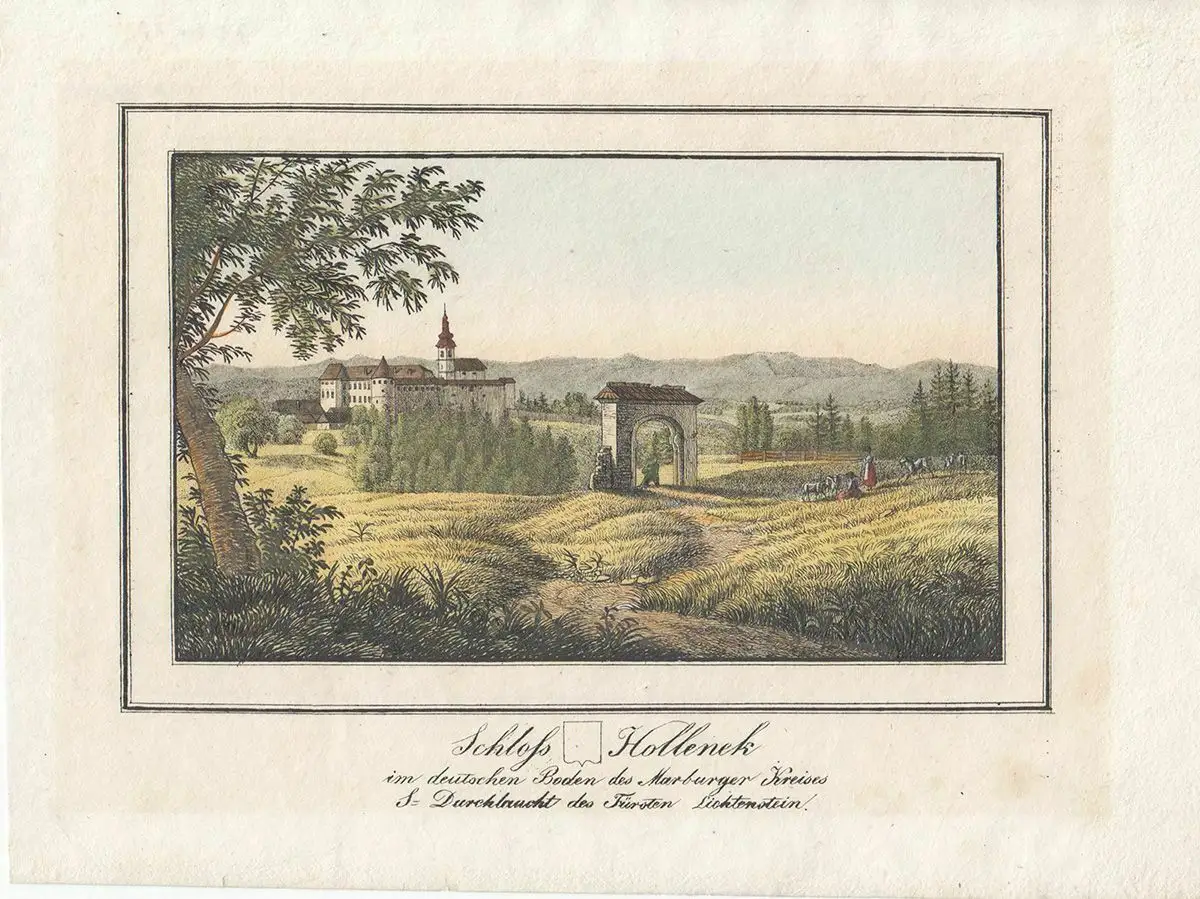 Bemerkungen: Nebehay-W. 286, 134 - Hollenegg in der Weststeiermark. Aus: Josef KAISER, "Lithographirte Ansichten der Steyermärkischen Staedte, Maerkte und Schloesser, gesammelt und Herausgegeben von J. F. Kaiser, Inhaber der k.k. priveligirten Lithographischen Anstalt zu Gratz".