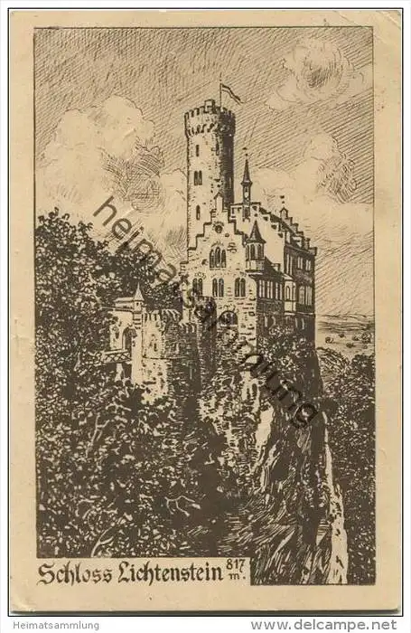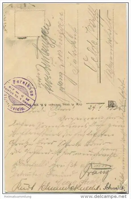 Schloss Lichtenstein - Verlag H. Sting Tübingen - Briefmarke entfernt - Eckknick oben rechts (E11418) gel. 1925