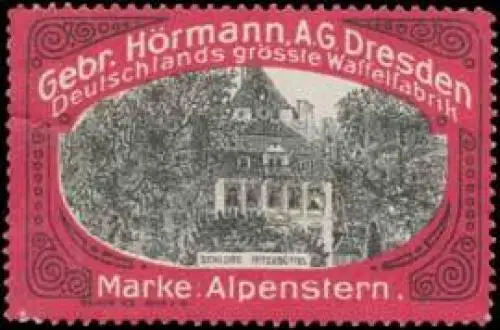 Deutschlands grösste Waffelfabrik, Marke: Alpenstern, Größe/Zustand: 3x5 , guter Zustand, Original alte Reklamemarke die seinerzeit für die Werbung benutzt wurde