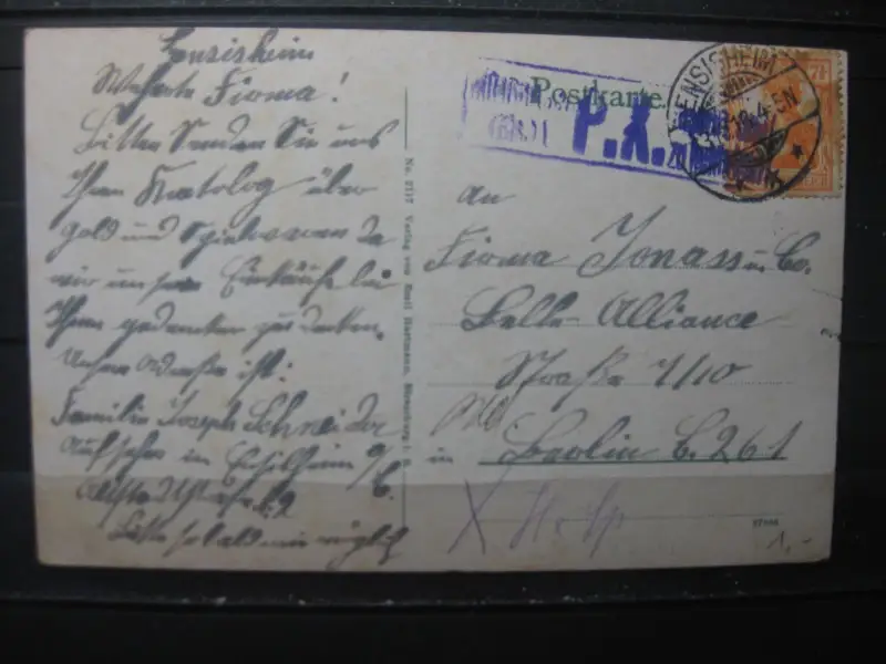 ca. 1918; Unschärfen, Spiegelungen, Verbiegungen sind allein durch das abfotografieren bedingt; Karte ist beidseitig abgebildet, Erhalt siehe Scan; ist das Foto qualitativ nicht aussagekräftig genug, kann es besseres Foto angefordert werden. Rückgabe bei Karten ist generell ausgeschlossen.