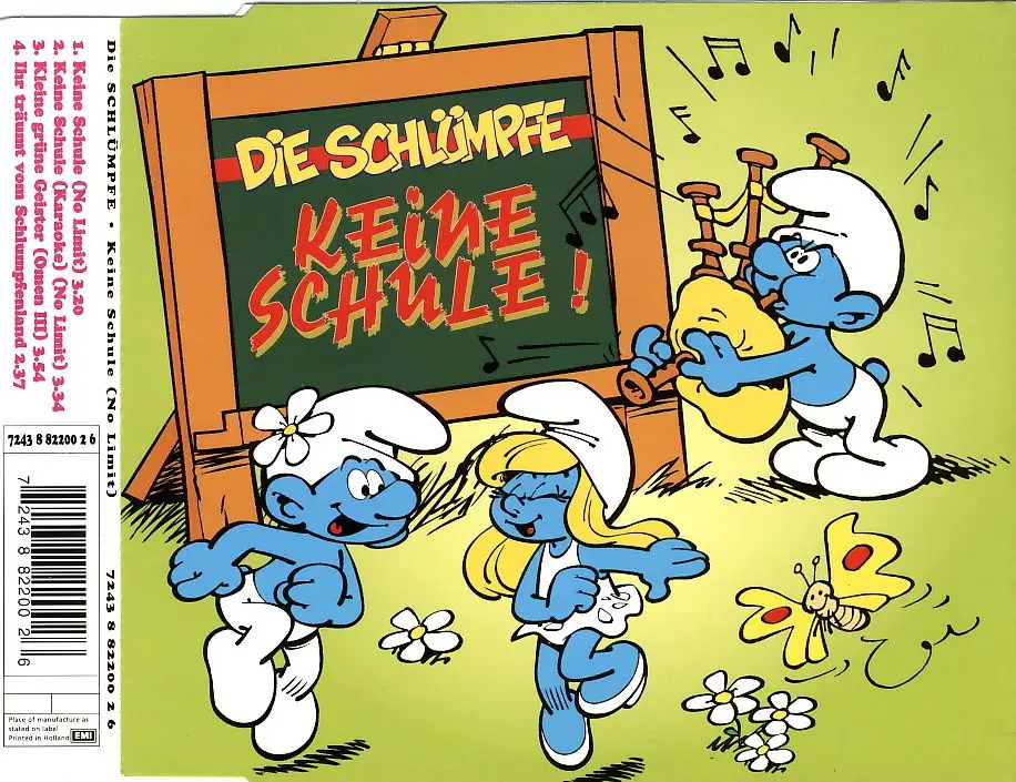 CD Single Die Schlümpfe - Keine Schule, 2 Unlimited - No Limit coverversion, Zustand CD VG Hülle M-; Made in Netherlands 1995 EMI Electrola 7243 8 82200 2