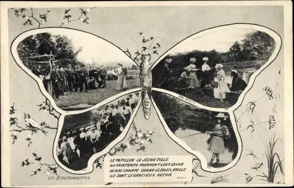 Schmetterling Ak Frauen beim Angeln, Mädchen, Frühling