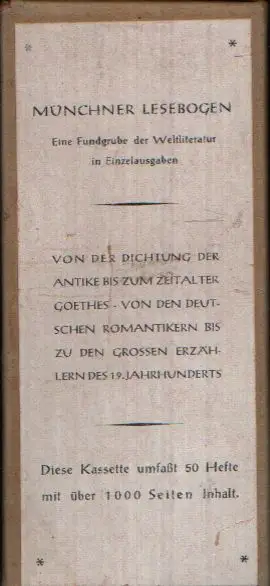 Münchner Lesebogen- Eine Fundgrube der Weltliteratur in Einzelausgaben Von der Dichtung der Antike bis zum Zeitalter Goethes- von den Deutschen Romantikern bis zu den großen Erzählern des 19. Jahrhunderts