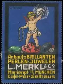 Ankauf von Brillanten, Perlen, Juwelen, Engel, Marienplatz 13, Größe/Zustand: 8x6 , guter Zustand, Original alte Reklamemarke die seinerzeit für die Werbung benutzt wurde