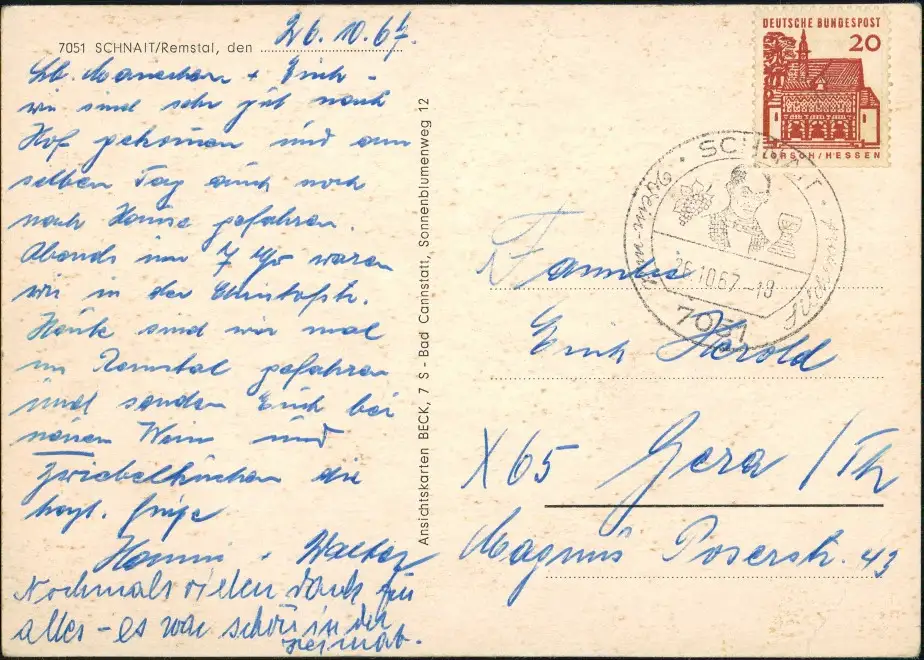 Schnait-Weinstadt 7051 SCHNAIT Remstal Panorama Totalansicht 1967 gelaufen mit Stempel SCHNAIT