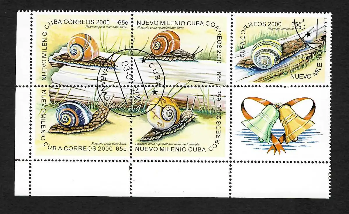 Schnecken über einen Bogen gestaltet, gestempelt Habana 2000