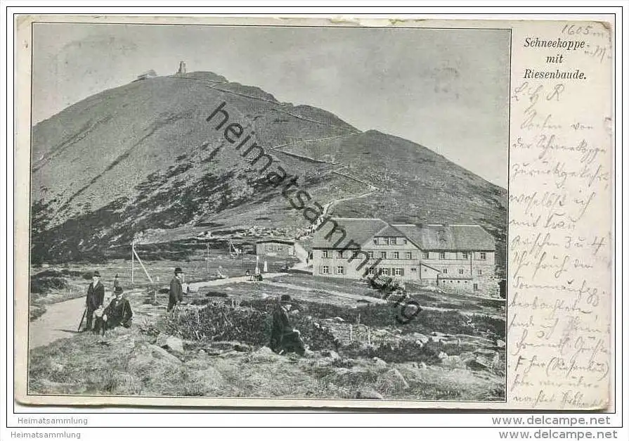 Schneekoppe mit Riesenbaude - Verlag Ad. Hartmann Schneekoppe - Gebrauchsspuren - Ecken bestossen (E9992) gel. 1903