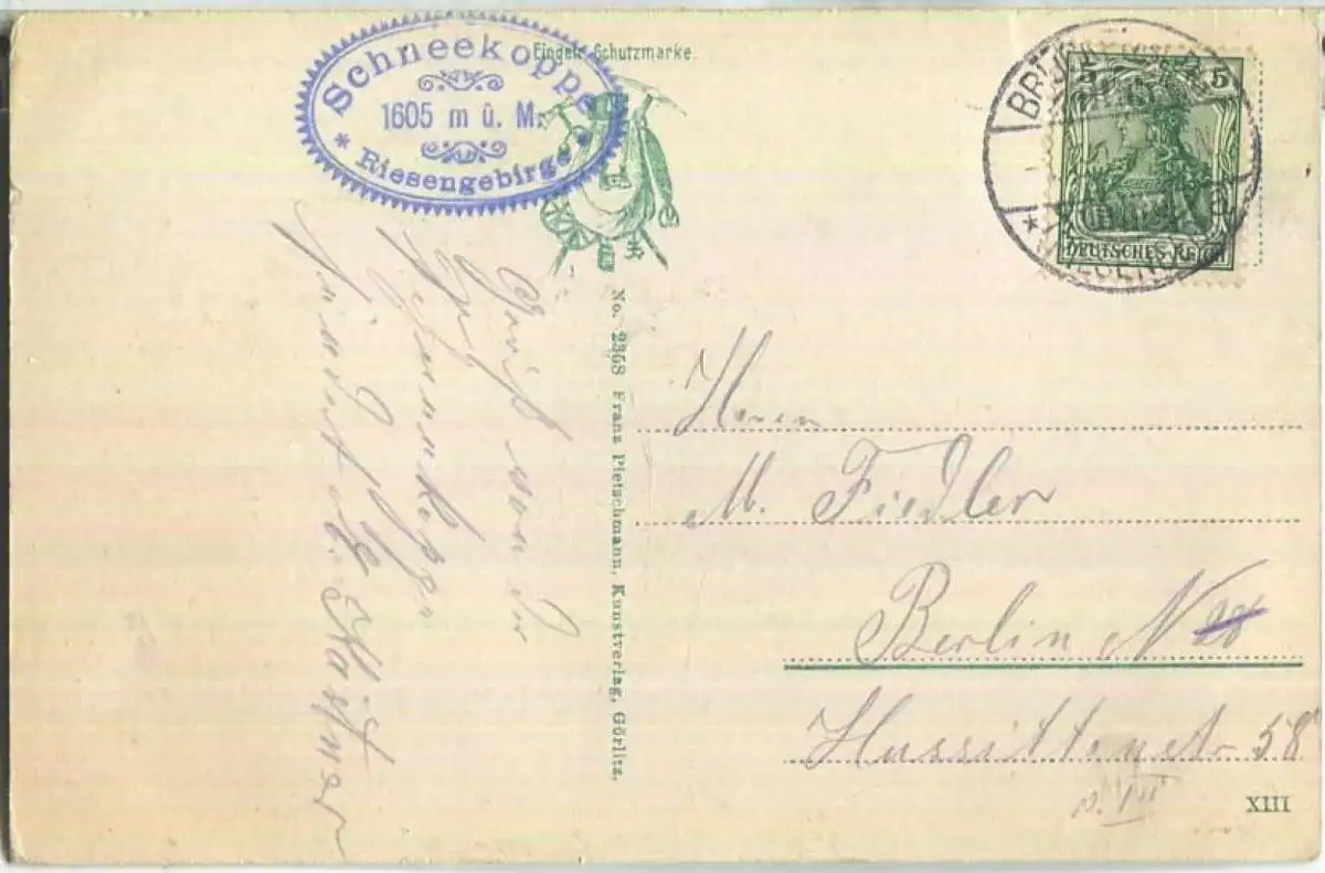 Schneekoppenhäuser mit Wetterwarte - Riesengebirge - Verlag Franz Pietschmann Görlitz - Lagerungsspuren (E92146) gel. 1914