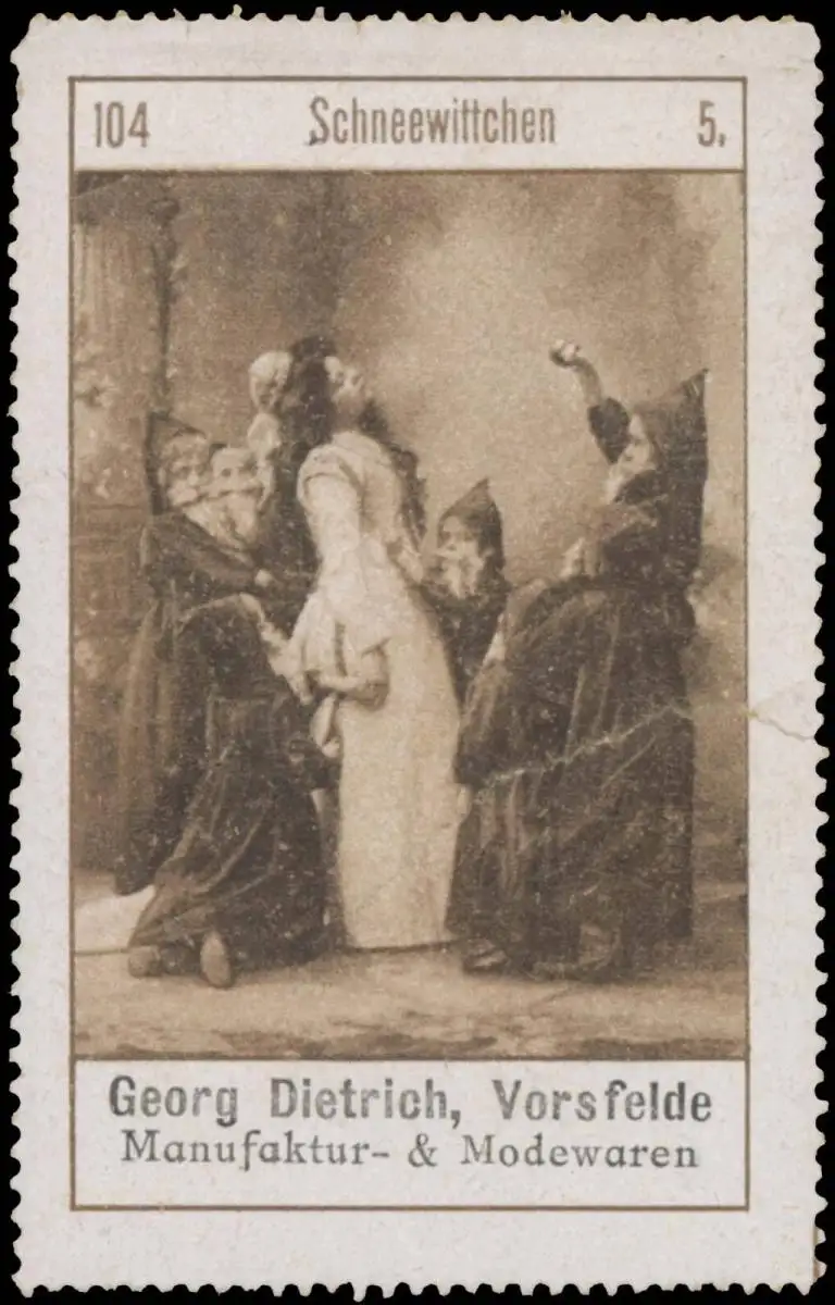Serie 104, Bild 5, Märchen, Zwerg, Wolfsburg, Manufaktur- & Modewaren, Größe/Zustand: 7x4 , beschädigt, Original alte Reklamemarke die seinerzeit für die Werbung benutzt wurde