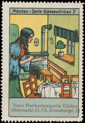 Märchen-Serie. Neue Postkartenquelle in Görlitz, Bruno Hanzig, Ansichtskarten und Schreibwaren, Obermarkt 25, Filiale: Dresdner Platz 12, Größe/Zustand: 6x4 , guter Zustand, Original alte Reklamemarke die seinerzeit für die Werbung benutzt wurde