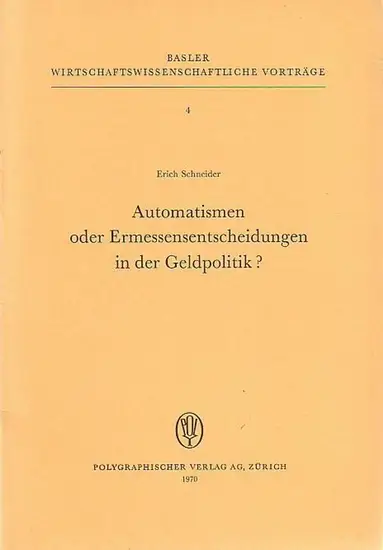 Schneider, Erich: Automatismen oder Ermessensentscheidungen in der Geldpolittk?.