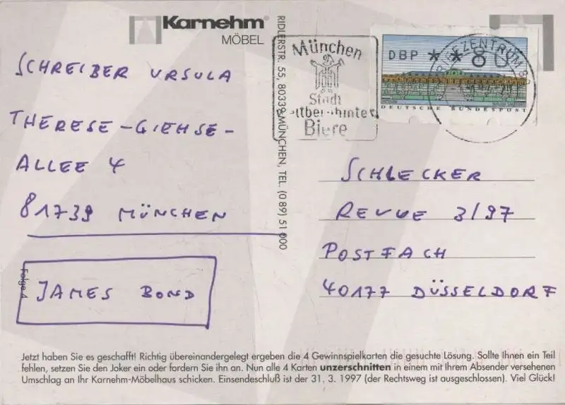 Ich hatte die Rechnung sofort als Vorkasse bezahlt, aber keine Zusendung der Karte erhalten. Trotz Nachfrage keine Rückmeldung bzw. Erklärung. Da es sich zum Glück nur um 1,70 € handelt, ist die Sache für mich erledigt, ärgerlich, aber zu verkraften. Mit den drei anderen Karten, die ich bestellt hatte, hat alles wunderbar geklappt.