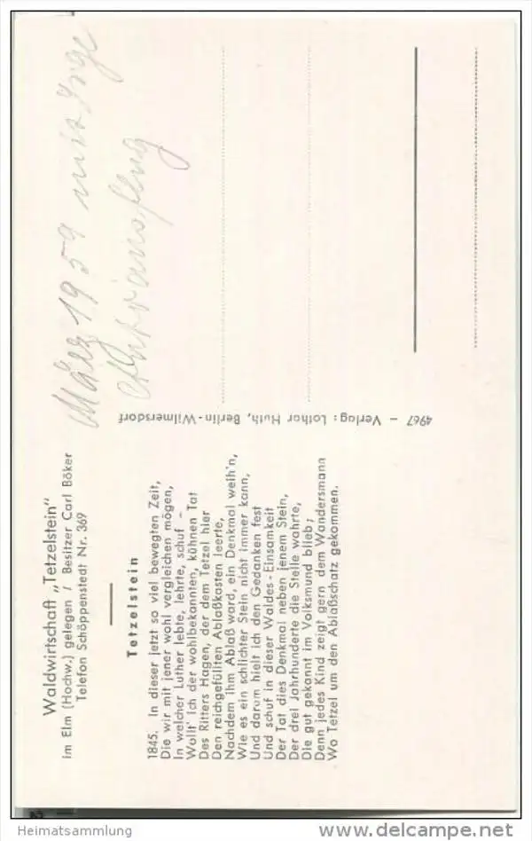 Schöppenstedt - Tetzelstein - Verlag Lothar Huth Berlin (G37569) *