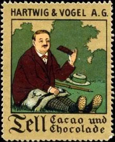 Wilhelm Tell Cacao und Chocolade, Kakao, Größe/Zustand: 5x4 , guter Zustand, Original alte Reklamemarke die seinerzeit für die Werbung benutzt wurde