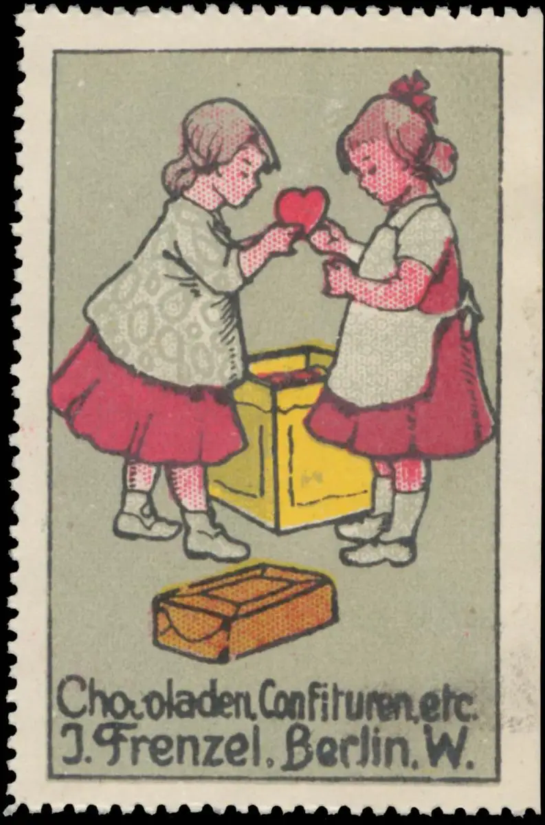 Chocoladen, Confituren etc. Kinder, Größe/Zustand: 6x4 , leicht fleckig, Original alte Reklamemarke die seinerzeit für die Werbung benutzt wurde