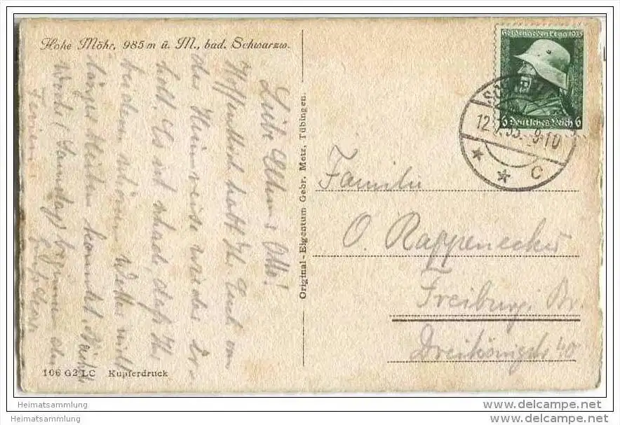Schopfheim - Hohe Möhr - Verlag Gebr. Metz Tübingen - leichte Gebrauchsspuren (G27398) gel. 1935